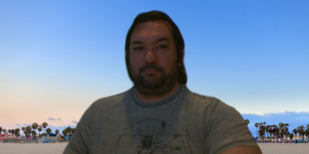 From there select “Show Background Effects”. That’ll open a menu that lets you select from a bunch of built-in graphics. Simply select one and click “Apply” (or “Apply and turn on video” if your camera is off) and people will see you on top of the image that you selected. Here’s me at the beach without leaving the confert of my home office for example.