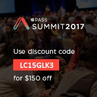 Anyhow this maybe my 6th PASS Summit but it won’t be my last. I encourage all who have never been or have gone before to go. It’s not too late to register, if you use discount code in the image you can save $150. There is so much you can get out of it each and every time to attend.